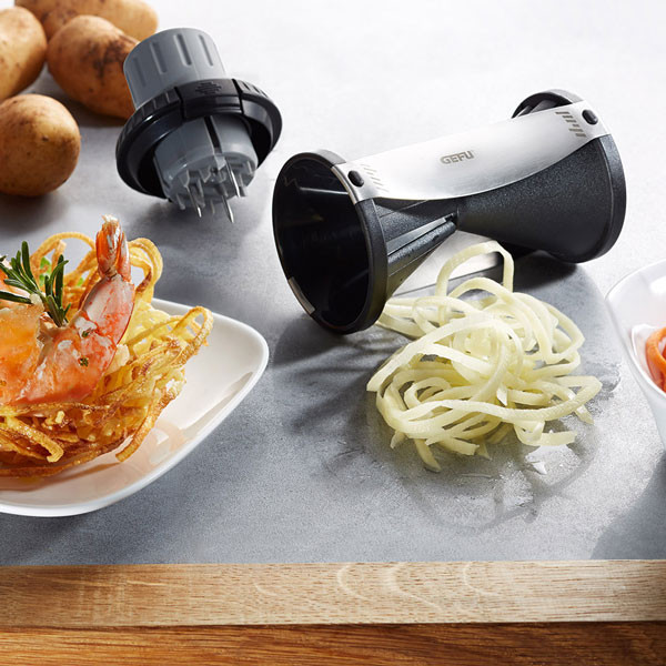 دارای تیغه بصورت مارپیچ برای رشته کردن یک تکه سبزیجات