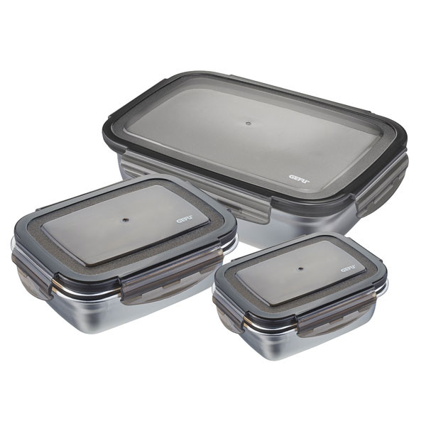 ست 3 عددی ظرف دربدار استیل مستطیل